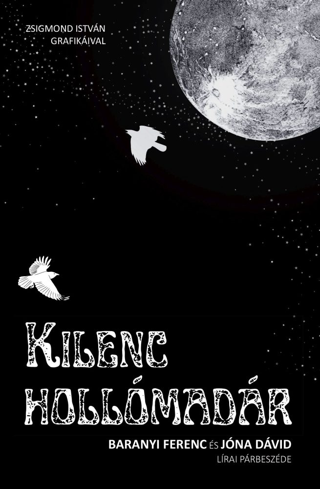Párbeszédre nehéz, olykor képtelen korunkban megnő a gesztusok és beszélgetések szerepe, fontossága, sőt elkerülhetetlensége. A mindennapokban és a művészetekben egyaránt. Ennek kulturáltságát és lírai minőségét Baranyi Ferenc és Jóna Dávid korábbi kötete, a Gyöngyhalászok ékesen bizonyítja: a költői és emberi barátság versbe forrott spontán módon. A mostani kötet az előzőnek folytatása, ám itt penzum is van: a választott versek mellett Baranyi által kijelölt, vagyis kiemelten fontosnak tartott műveket is gondol tovább Jóna Dávid a maga életével és életigazságaival. Újabb állomás tehát a lírai párbeszéd a Kilenc hollómadárban, okulásul nem csupán a költészetet kedvelőknek, hanem a hiányokkal terhes korunknak is. Mindannyiunknak! (Kaiser László)Mit is tart kezében az olvasó? Egy újkori kódexet! Mátrixot! Egyszerűséget! Szépséget! A költői teremtés kefelevonatát! Két nagyszerű költő versországát! Történelemsűrítményt felhigítva a valósággal, a képzelettel, játékos-komolymély lírát, gondolatcsarnokot. A szó megfogan és aki át akar kelni az unaloműzött, értékszétdobált világban Párizstól Óbudáig, Orpheusztól Toldiig a lefordíthatatlan tengerek, tájak, múltidéző rímkoppanások között, az ennél jobb bárkát nem találhat. Össze van benne gyűjtve a szerelemből, az olasz reneszánszból, mai világunkból minden szikra, minden gyöngyhajszolt gondolat megmenekülés, minden vallomás, minden szóvá domborodó versidom. Kell-e a költészetnek Baranyi Ferencnél és Jóna Dávidnál nagyobb bizonyíték arra, hogy a 86 és 55 éves váteszi költők mintegy 60 évnyi versválasz arányában megkapjuk mi is, mindennapi történéseink általuk kidolgozott életbemártott egyenletét. (Szentjánosi Csaba)Baranyi Ferenc és Jóna Dávid lírai kézfogása nyomán a néhány éve megjelent verspárbeszédük kiadása után újabb kötet formálódott. A szavak igazságában ölelkező lelki-gondolati barátság ez. A Jóna-versek az egykor megírt Baranyi-szövegek továbbgondolásai, lírai asszociációi. A fiatalabb kortárs újraformálja a XX. század közepének évtizedeit is megélt költő egykor ihletet adó érzéseit, impresszióit, hogy aztán saját életterének tapasztalatait a maga történetén és korán mint retortán áteresztve, a versélményt lepárolva helyezze el költői univerzumában. Így válnak időtlenné évtizedekkel ezelőtt megírt gondolatok. Hollómadár szárnyán vándorolnak ideák, érzések, tapasztalások Baranyi Ferenctől Jóna Dávidon át az olvasóig. (Dr. Gréczi-Zsoldos Enikő)